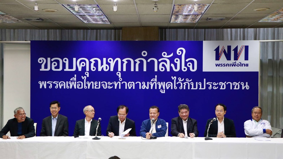 พล.ต.ท.วิโรจน์ เปาอินทร์ หัวหน้าพรรคเพื่อไทย พร้อมด้วยฝ่ายกฎหมายของพรรค อาทิ นายชูศักดิ์ ศิรินิล นายโภคิน พลกุล นายชัยเกษม นิติสิริ นายพงศ์เทพ เทพกาญจนา และนายนพดล ปัทมะ ร่วมกันออกแถลงการณ์พรรคเพื่อไทย ขอให้คณะกรรมการการเลือกตั้ง (กกต.) เปิดเผยผลคะแนนของหน่วยเลือกตั้ง ชี้แจงจำนวนบัตรที่เพิ่ม และเปิดเผยวิธีการคำนวณ ส.ส.ระบบบัญชีรายชื่อที่ถูกต้อง