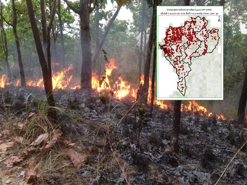 เชียงใหม่ 2 เม.ย.- 9 จังหวัดเหนือฟ้าหลัวด้วยหมอกควันไฟป่า จิสดาพบจุดความร้อน 1,969 จุด แม่ฮ่องสอนมากสุด ด้านผู้ว่าฯ เชียงใหม่เสนอแก้ปัญหาไฟป่าทั้งระดับชาติและประเทศเพื่อนบ้าน