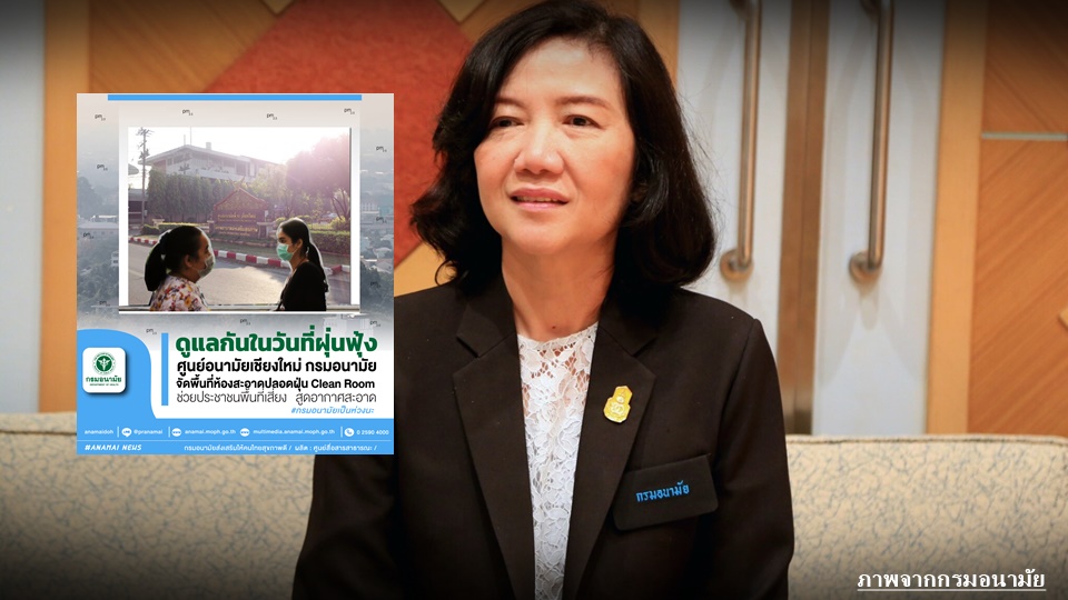 สธ.2เม.ย.-กรมอนามัยกำชับศูนย์อนามัยพื้นที่ภาคเหนือเฝ้าระวังสุขภาพประชาชนในพื้นที่เสี่ยง สื่อสารสร้างความรู้ในการป้องกันตนเองด้วยการสวมหน้ากากอนามัย พร้อมสนับสนุนพื้นที่ศูนย์อนามัยจัดทำห้องสะอาด ปลอดฝุ่น (Clean Room) ช่วยให้ประชาชนและเจ้าหน้าที่ใช้เป็นที่พักสูดอากาศสะอาดช่วงวิกฤติฝุ่น
