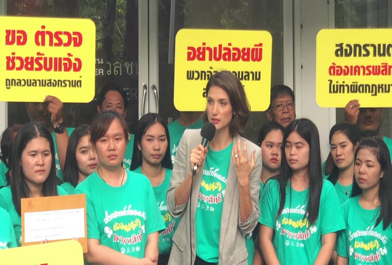 กรุงเทพฯ 3 เม.ย.- ซินดี้ นางแบบชื่อดังพร้อมมูลนิธิหญิงชายก้าวไกล ร้องสำนักงานตำรวจแห่งชาติ ป้องปรามการลวนลามคุกคามทางเพศ ช่วงเทศกาลสงกรานต์ เสนอตั้งจุดรับแจ้งเหตุช่วยเหลือในพื้นที่เล่นน้ำ