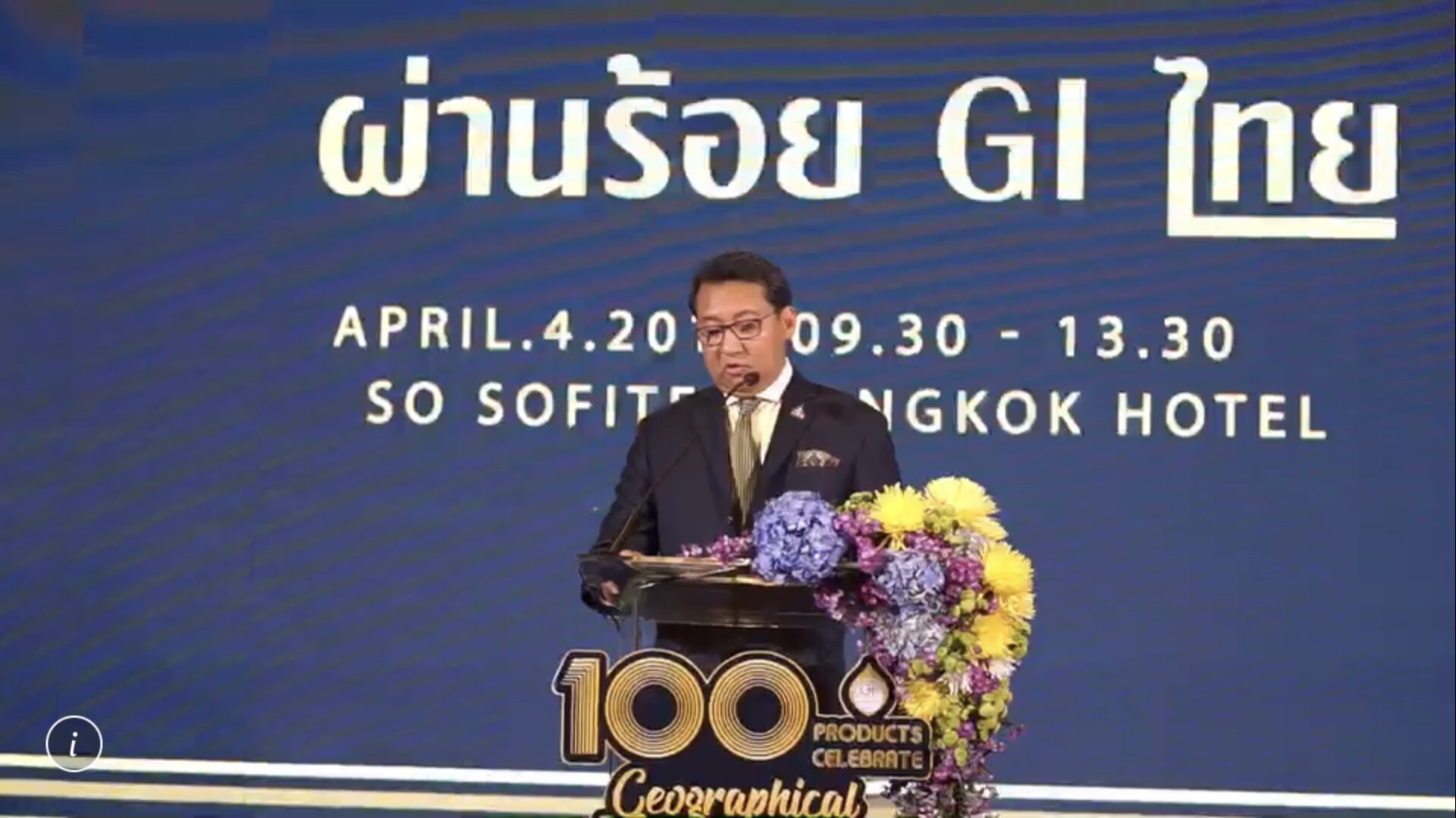 อย่างไรก็ตาม วันนี้ทางกรมฯ จึงได้จัดงาน “ร้อยเรื่องราว ผ่านร้อย GI ไทย” เพื่อฉลองความสำเร็จในการผลักดันให้จังหวัดต่าง ๆ ของประเทศไทยนำสินค้า GI ของตนมาขึ้นทะเบียนจนมีสินค้าไทยได้รับการขึ้นทะเบียน GI 103 รายการ จาก 67 จังหวัดให้เห็นถึงความมุ่งมั่น จริงจัง และความสำเร็จในการผลักดันการพัฒนาด้านต่างๆ เกี่ยวกับสิ่งบ่งชี้ทางภูมิศาสตร์ของกรมทรัพย์สินทางปัญญาตั้งแต่การส่งเสริมการขึ้นทะเบียน การควบคุมคุณภาพและการตลาดจนมีผู้ประกอบการที่ขอใช้ตรา GI ไทยแล้วกว่า 2,500 ราย
