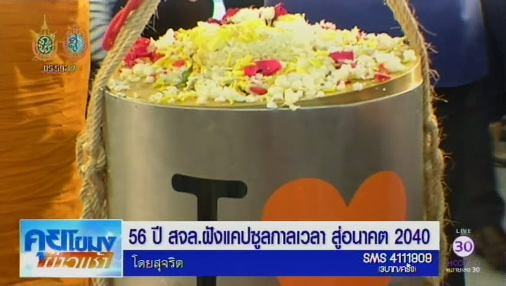 พระพรหมมังคลาจารย์ หรือเจ้าคุณธงชัย ผู้ช่วยเจ้าอาวาสวัดไตรมิตรวิทยารามวรวิหาร ทำพิธีตอกฝา “แคปซูลกาลเวลาวิสัยทัศน์ สจล.2016” ภายในแคปซูลใส่เอกสารแนวคิดที่แสดงนวัตกรรมแห่งอนาคต พร้อมวัตถุมงคลทั้งผ้ายันต์เจ้าคุณธงชัย พระเครื่อง ภายใต้แนวคิด “รวมพลังสร้างชาติ” ฉลองครบรอบ 56 ปี การก่อตั้งสถาบัน และอีก 24 ปีข้างหน้า หรือ 2040 แคปซูลนี้จะถูกเปิดออก เพื่อให้คนอนาคตรับรู้ถึงเป้าหมายของคนในอดีต สร้างแรงบันดาลให้คนรุ่นหลังไม่หยุดคิด ก้าวทันเทคโนโลยีที่ไม่หยุดนิ่ง