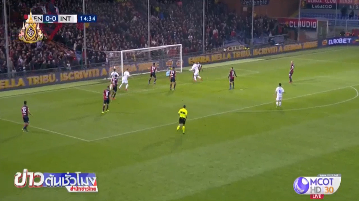 อีกคู่ เจนัว พบกับ อินเตอร์ มิลาน นาทีที่ 15 โรแบร์โต้ กายาร์ดินี่ ยิงให้ อินเตอร์ ขึ้นนำ 1-0 นาทีที่ 40 เมาโร อิการ์ดี้ ถูก คริสเตียน โรเมโร่ ทำฟาวล์ในเขตโทษ กรรมการให้อินเตอร์ได้จุดโทษ และเป็น อิการ์ดี้ ที่ยิงเข้าไปให้อินเตอร์นำห่าง 2-0 ครึ่งหลังนาทีที่ 54 อิการ์ดี้ จ่ายทะลุช่องให้ อีวาน เปริซิช หลุดเข้าไปยิงให้อินเตอร์ นำ 3-0 นาทีที่ 81 อีวาน เปริซิช เปิดเตะมุมให้ โรแบร์โต้ กายาร์ดินี่ โหม่งเข้าไปให้ อินเตอร์ เอาชนะไปได้ 4-0 มีเพิ่มเป็น 56 คะแนน ตามหลังยูเวนตุส 25 คะแนน. – สำนักช่าวไทย