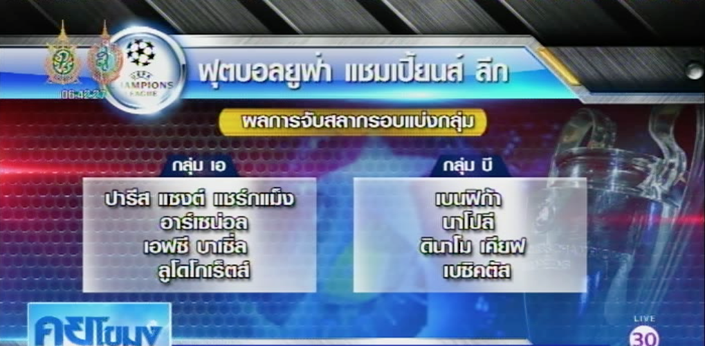 ผลการจับฉลากฟุตบอลยูฟ่า แชมเปียนส์ ลีก รอบแบ่งกลุ่ม ที่ปีนี้จัดขึ้นที่ราชรัฐโมนาโก มีตำนานนักเตะอย่าง คลาเรนซ์ เซดอร์ฟ อดีตมิดฟิลด์ทีมชาติเนเธอร์แลนด์ และ เธียร์รี อองรี ตำนานดาวยิงทีมอาร์เซนอล มาร่วมพิธีจับฉลากด้วย โดยกลุ่มที่น่าสนใจคือกลุ่ม ซี เมื่อ บาร์เซโลนา แชมป์ ลาลีกา สเปน จับฉลากมาอยู่ร่วมกลุ่มกับ แมนฯ ซิตี้ จากอังกฤษ ซึ่งจะทำให้โจเซป กวาร์ดิโอลา กุนซือทีม “เรือใบสีฟ้า” กลับไปเผชิญหน้ากับบาร์ซาอีกครั้ง