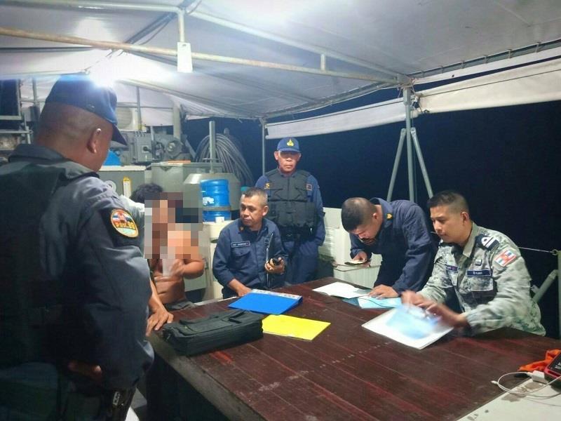 การลาดตระเวนค้นหานานกว่า 3 ชั่วโมง จึงพบเรือประมงลำเกิดเหตุดังกล่าวและเข้าควบคุมสถานการณ์ทันที โดยไต๋เรือ อายุ 39 ปี ให้การว่า ช่างเครื่องของเรือเป็นชาวกัมพูชาเกิดอาการหลอนโดยไม่ทราบสาเหตุบอกว่าจะมีคนมาทำร้าย จึงรีบแจ้งทางวิทยุขอความช่วยเหลือ