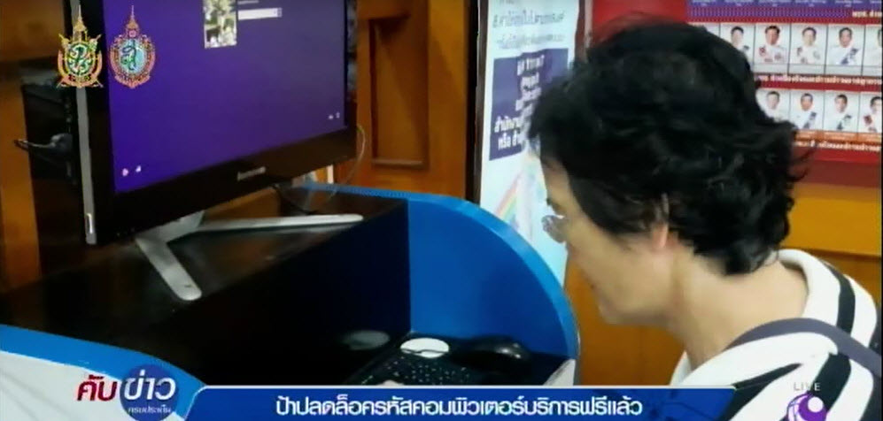 นนทบุรี 25 ส.ค.- ป้าปลดล็อกรหัสคอมพิวเตอร์บริการฟรี ของ สภ.เมืองนนทบุรีแล้ว หลังวานนี้ใส่รหัสล็อกคอมพิวเตอร์ที่ให้บริการฟรี ทำให้คนอื่นใช้ไม่ได้ แจงไม่ได้เจตนา