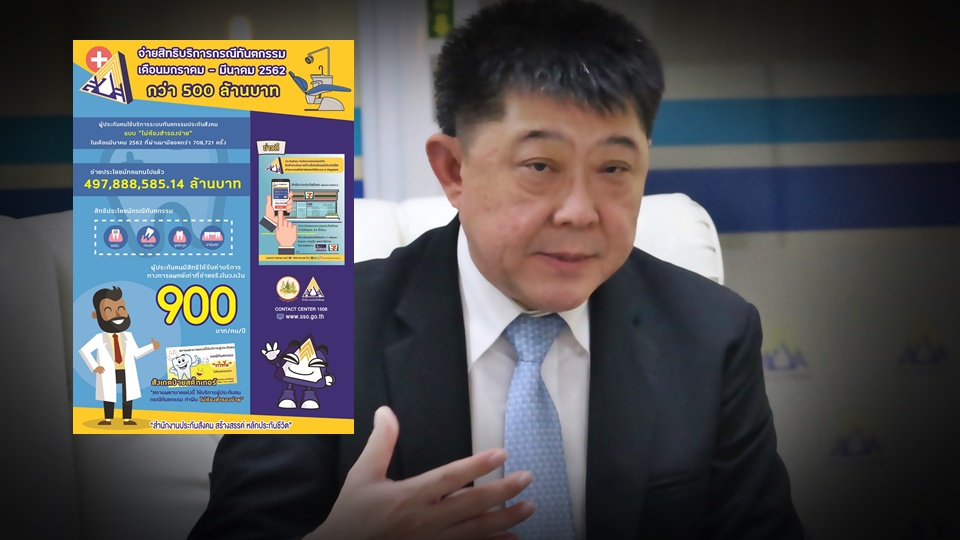 สปส.5 เม.ย.- ปี 62 ทำฟันไม่ต้องสำรองจ่ายยอดพุ่งไม่หยุด 7 แสนกว่าครั้งใน 3 เดือนประกันสังคมจ่ายไปกว่า 500 ล้าน