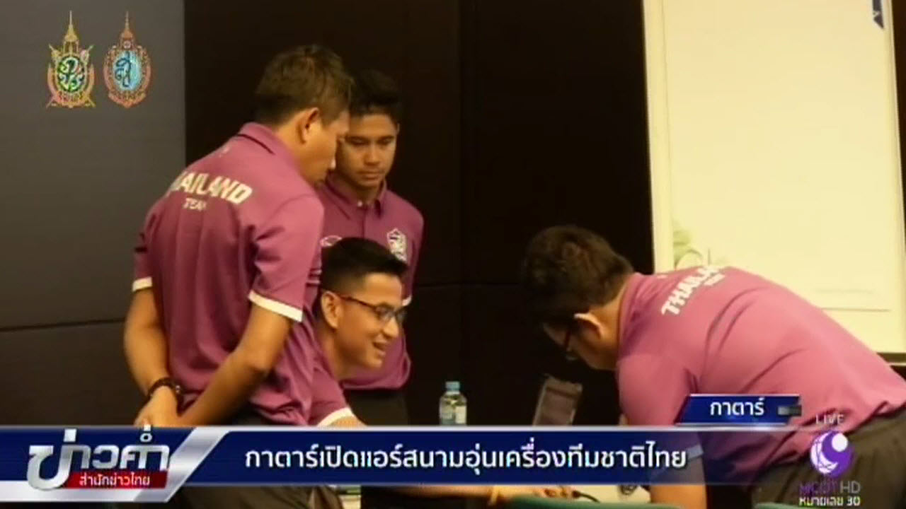 ความเคลื่อนไหวล่าสุดของทัพนักเตะช้างศึก “ทีมชาติไทย” ที่เตรียมลงสนามนัดอุ่นเครื่องกับ กาตาร์ เจ้าภาพฟุตบอลโลกปี 2022 ในคืนนี้เวลา 23.00 น. เป็นการเตรียมความพร้อมก่อนลงเล่นฟุตบอลโลก 2018 รอบคัดเลือกโซนเอเชีย รอบ 12 ทีมสุดท้าย ที่จะพบกับซาอุดีอาระเบีย โดยล่าสุดทางสมาคมฟุตบอลของกาต้าร์ จะเปิดเครื่องปรับอากาศในสนามอัล ซาดด์ สเตเดี้ยม ซึ่งจะทำให้อุณหภูมิในสนามลดลงจาก 40 องศาเซลเซียส เหลือเพียง 22 องศาเซลเซียส