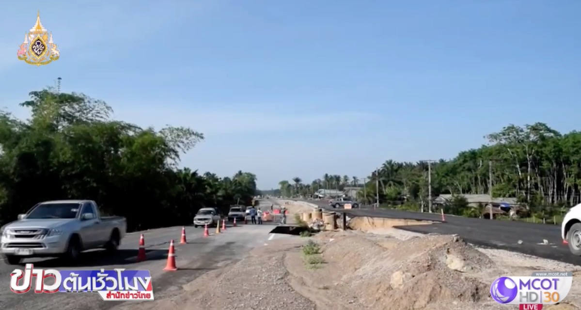 กระบี่ 7 เม.ย.- ฝนที่ตกหนักเมื่อคืนที่ผ่านมา ทำให้เกิดน้ำป่าหลากจากเทือกเขาต่อไหลเข้าท่วมพื้นที่หมู่ 7 ตำบลเขาต่อ อำเภอปลายพระยา จังหวัดกระบี่ กระแสน้ำยังกัดเซาะถนนสายเขาต่อ – พนม ถนนสายหลักจากจังหวัดสุราษฎร์ธานี ผ่านกระบี่ไปจังหวัดภูเก็ต ทรุดตัวเป็นแนวยาว ประมาณ 50 เมตร ลึก 5 เมตร เจ้าหน้าที่ต้องปิดถนนจนเหลือเพียง 1 ช่องจราจร ส่งผลให้การจราจรติดขัด ขณะนี้เจ้าหน้าที่อยู่ระหว่างเร่งซ่อมแซม.-สำนักข่าวไทย