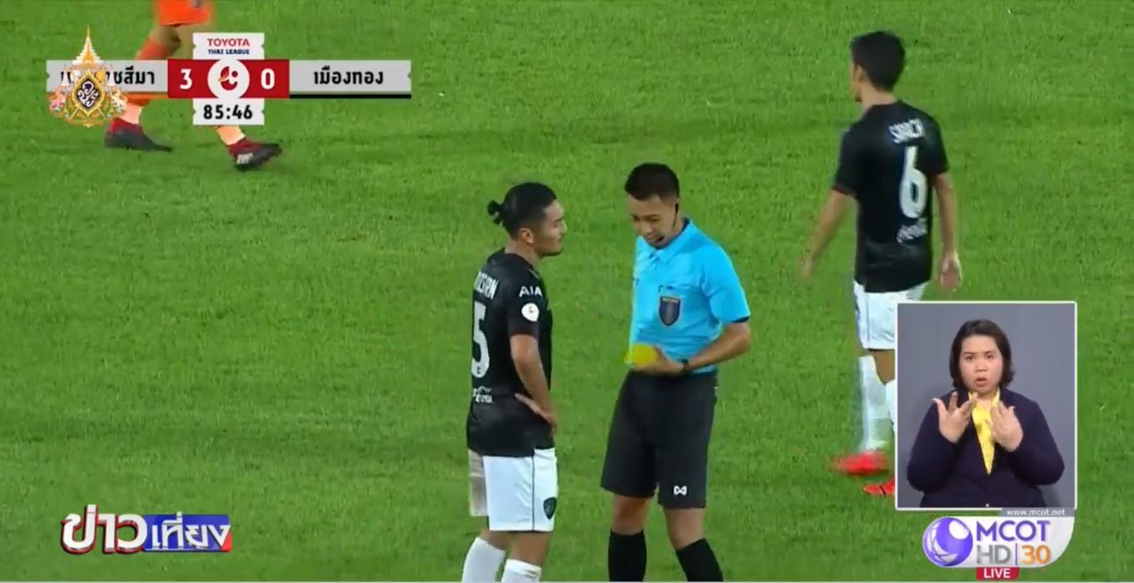 นาทีที่ 67 อองรี ดุมเบีย ซัดประตูให้ โคราช นำ 3-0 จากนั้นในนาที 86 เมืองทอง มาเหลือผู้เล่น 10 คน เมื่อ อดิศร พรหมรักษ์ โดนใบเหลือง-แดงไล่ออกจากสนามไป ก่อนที่ อดิศักดิ์ ไกรษร ตีไข่แตกให้ทีมเยือน นาที 89 แต่ไล่ไม่ทัน