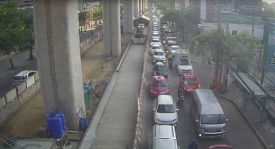 ถนนสุขุมวิท ขาเข้า จากแยกพระโขนง มุ่งหน้าแยกเอกมัย ยังเคลื่อนตัวได้ดีทั้ง 2