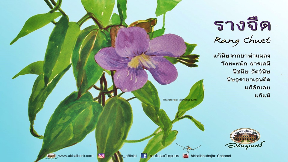 น.ส.เบญจวรรณ กล่าวต่อไปว่า ต่อไปคือรางจืด ราชาแห่งยาแก้พิษ เป็นสมุนไพรฤทธิ์เย็นอีกชนิดที่มีสรรพคุณมากมาย ทั้งลดอาการแพ้ การอักเสบ ใช้กินแก้ไข้ร้อนในใช้ได้ทั้งภายในและภายนอก เช่น ทำเป็นน้ำรางจืดฉีดพ่นลดความร้อนที่ผิวกาย ผิวหน้า ลดอาการแสบแดงและผิวไหม้จากแสงแดดและยังทำเป็นเครื่องดื่มดับร้อนได้อีกด้วย