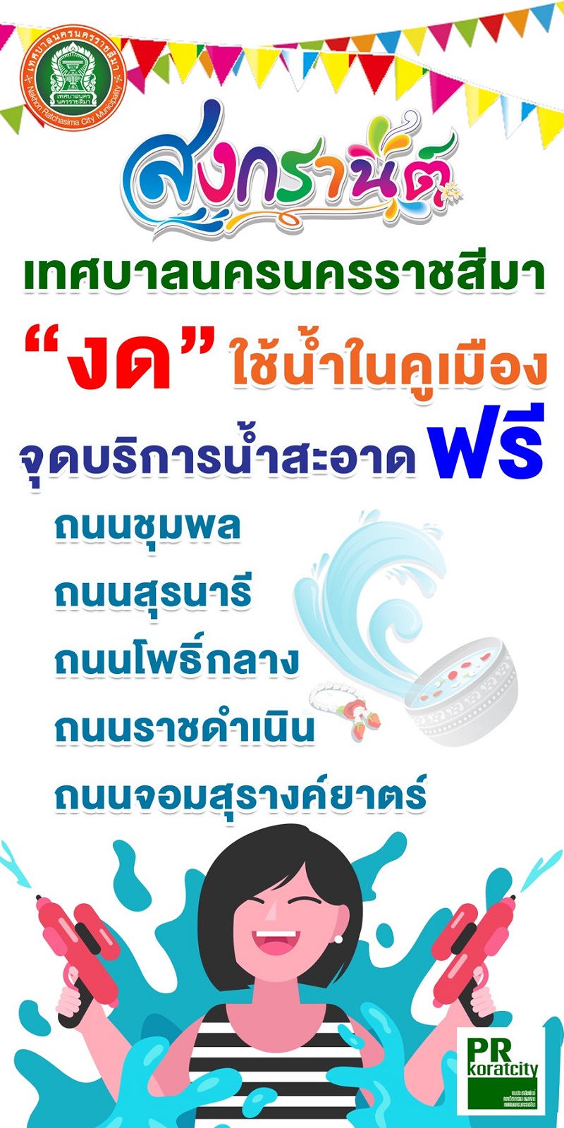 นายสุรวุฒิ เชิดชัย นายกเทศมนตรีเทศบาลนครนครราชสีมา ประกาศขอความร่วมมือประชาชนงดใช้น้ำบริเวณคูเมืองในช่วงเทศกาลสงกรานต์ เนื่องจากปริมาณน้ำมีน้อย อย่างไรก็ตาม เพื่อความปลอดภัยและร่วมสืบสานวัฒนธรรมเล่นน้ำสงกรานต์ ทางเทศบาลฯ ได้จัดจุดบริการน้ำสะอาดใช้เล่นสงกรานต์บริเวณ ถ.ชุมพล ถ.สุรนารี ถ.โพธิ์กลาง ถ.ราชดำเนิน และ ถ.จอมสุรางค์ยาตร์