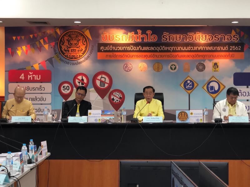 นายอาคม เติมพิทยาไพสิฐ รัฐมนตรีว่าการกระทรวงคมนาคม ในฐานะรองประธานคณะกรรมการนโยบายป้องกันและลดอุบัติเหตุทางถนนแห่งชาติ คนที่สอง ในฐานะประธานแถลงข่าวสรุปผลการดำเนินงานของศูนย์อำนวยการป้องกันและลดอุบัติเหตุทางถนนช่วงเทศกาลสงกรานต์ 2562 เปิดเผยว่า ศูนย์อำนวยการป้องกันและลดอุบัติเหตุทางถนนช่วงเทศกาลสงกรานต์ พ.ศ. 2562 โดยกรมป้องกันและบรรเทาสาธารณภัยและความร่วมมือของหน่วยงานภาคีเครือข่ายได้รวบรวมสถิติอุบัติเหตุทางถนนประจำวันที่ 11 เมษายน 2562 ซึ่งเป็นวันแรกของการรณรงค์ “ขับรถมีน้ำใจ รักษาวินัยจราจร” เกิดอุบัติเหตุ 468 ครั้ง ผู้เสียชีวิต 46 ราย ผู้บาดเจ็บ 482 คน สาเหตุที่ทำให้เกิดอุบัติเหตุสูงสุด ได้แก่ ดื่มแล้วขับ ร้อยละ 34.62 ขับรถเร็ว ร้อยละ 26.92 ยานพาหนะที่เกิดอุบัติเหตุสูงสุด ได้แก่ รถจักรยานยนต์ ร้อยละ 78.47 ส่วนใหญ่เกิดในเส้นทางตรง ร้อยละ 65.38 บนถนนกรมทางหลวง ร้อยละ 42.31 ถนนใน อบต./หมู่บ้าน ร้อยละ 35.04 ช่วงเวลาที่เกิดอุบัติเหตุสูงสุด ได้แก่ ช่วงเวลา 16.01 – 20.00 น. ร้อยละ 29.06 ผู้บาดเจ็บและเสียชีวิตสูงสุดอยู่ในช่วงอายุ 50 ปีขึ้นไป ร้อยละ 25.19 ทั้งนี้ ได้จัดตั้งจุดตรวจหลัก 2,036 จุด เจ้าหน้าที่ปฏิบัติงาน 65,276 คน เรียกตรวจยานพาหนะ709,464 คัน มีผู้ถูกดำเนินคดี รวม 163,584 ราย มีความผิดฐานไม่สวมหมวกนิรภัย 45,230 ราย ไม่มีใบขับขี่ 41,485 ราย โดยจังหวัดที่เกิดอุบัติเหตุสูงสุด ได้แก่ นครศรีธรรมราช (20 ครั้ง) จังหวัดที่มีผู้เสียชีวิตสูงสุด ได้แก่ อุดรธานี (4 ราย) จังหวัดที่มีผู้บาดเจ็บสูงสุด ได้แก่ นครราชสีมา (23 คน)