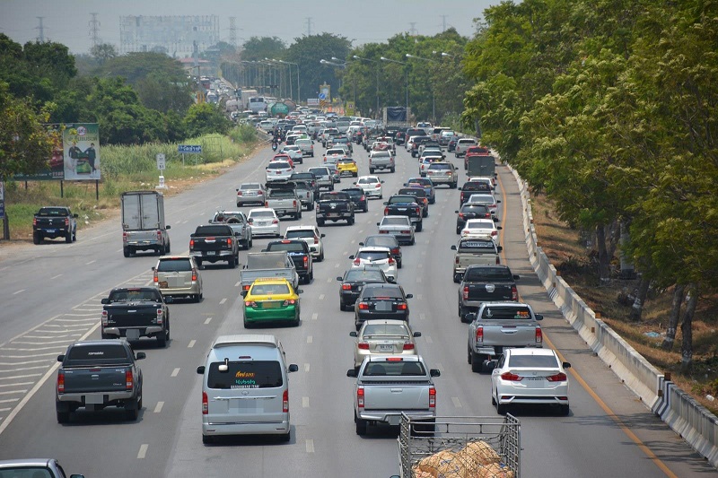 สภาพการจราจรถนนสายเอเซียในช่วงเทศกาลสงกรานต์ บ่ายวันนี้ (12 เม.ย.) เขตจังหวัดอ่างทอง รอยต่อกับ ต.มหาราช จ.พระนครศรีอยุธยา ไปจนถึงเขตติดกับ อ.พรหมบุรี จ.สิงห์บุรี ระยะทางประมาณ 20 กิโลเมตร มีปริมาณรถยนต์เต็มทุกช่องทางในฝั่งขาออก กทม. ใช้ความเร็วได้ประมาณ 20-30 กิโลเมตรต่อชั่วโมง บางจุดชะลอตัวสลับหยุดนิ่ง เจ้าหน้าที่แขวงทางหลวง ตำรวจ และกู้ภัย เร่งเปิดช่องทางพิเศษบนถนนสายเอเซีย ตั้งแต่หลักกิโลเมตรที่ 57-60 ต.ชัยฤทธิ์ จนถึง ต.จรเข้ร้อง อ.ไชโย จ.อ่างทอง เพื่อระบายรถไม่ให้สะสมไปถึงค่ำคืน