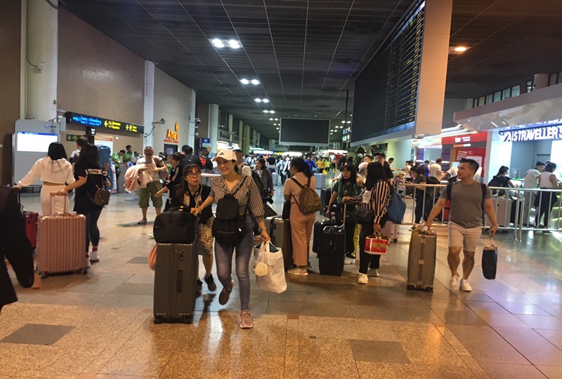 บรรยากาศการเดินทางของประชาชนและนักท่องเที่ยวช่วงเทศกาลสงกรานต์ที่สนามบินดอนเมือง วันนี้บรรยากาศคึกคักประชาชนและนักท่องเที่ยวเดินทางเข้าเช็คอินจำนวนมาก จนแน่นอาคารผู้โดยสารต่างประเทศ ส่วนมากเป็นนักท่องเที่ยวจากโซนเอเชีย บริษัทท่าอากาศยานจำกัด ต้องระดมเจ้าหน้าที่คอยอำนวยความสะดวกตามช่องทางต่างๆทั้งขาเข้าและขาออก เพื่อรองรับกับจำนวนนักท่องเที่ยวและการบริการที่รวดเร็ว ขณะที่เจ้าหน้าที่ตำรวจท่องเที่ยว และ ตำรวจตรวจคนเข้าเมือง จัดกำลังดูแลความเรียบร้อยและป้องกันเหตุร้ายตลอด 24ฃั่วโมง .- สำนักข่าวไทย