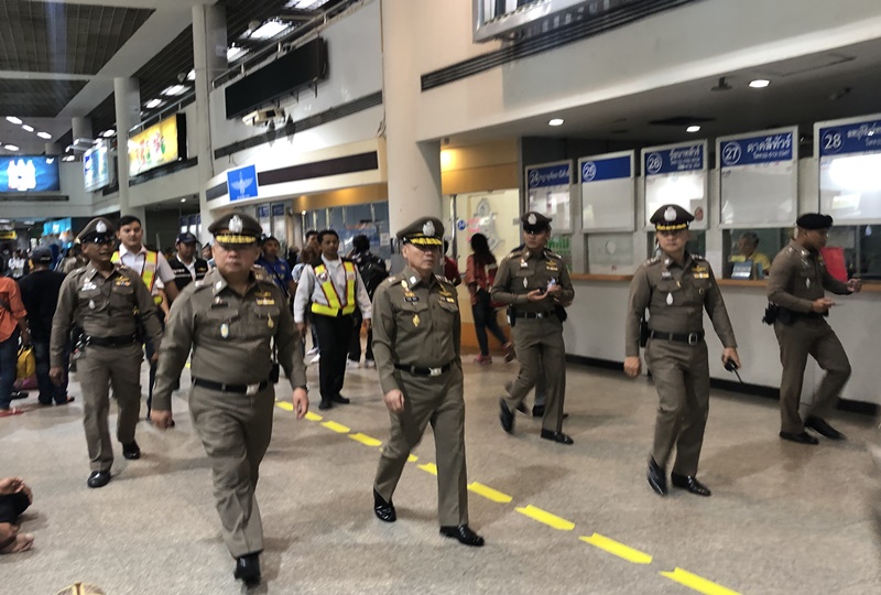 กรุงเทพฯ 13 เม.ย.- ผบ.ตร.ตรวจความพร้อม ขนส่งหมอชิต-สายใต้ใหม่ กำชับเจ้าหน้าที่ กวดขันคนขับรถ ป้องกันเมาแล้วขับ เฝ้าระวังมิจฉาชีพ ฉวยโอกาสช่วงเดินทาง