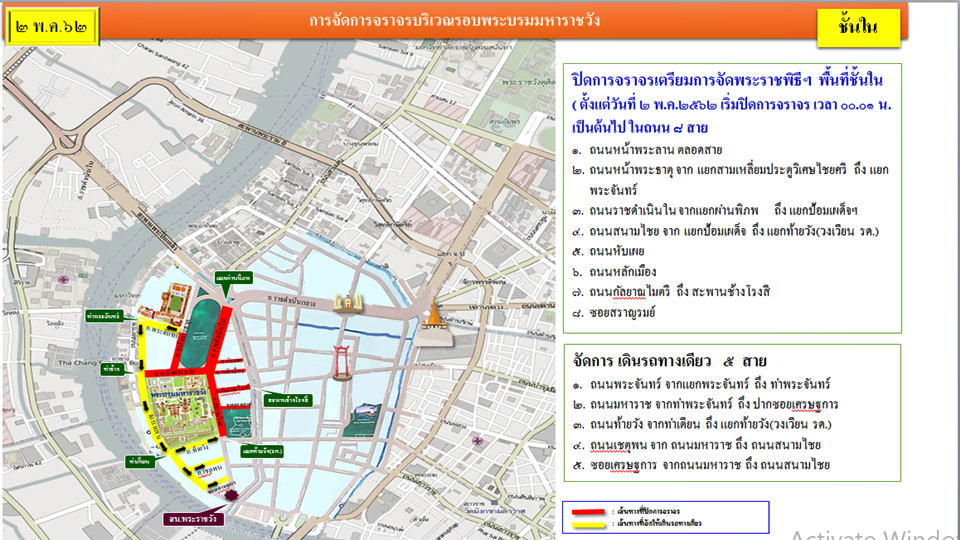 วันที่ 4 พ.ค. 2562 จะปิดการจราจรต่อเนื่องจากวันที่ 3 พ.ค. 2562 จนถึงเวลา 24.00 น. และเปิดจุดคัดกรอง 06.00 น.