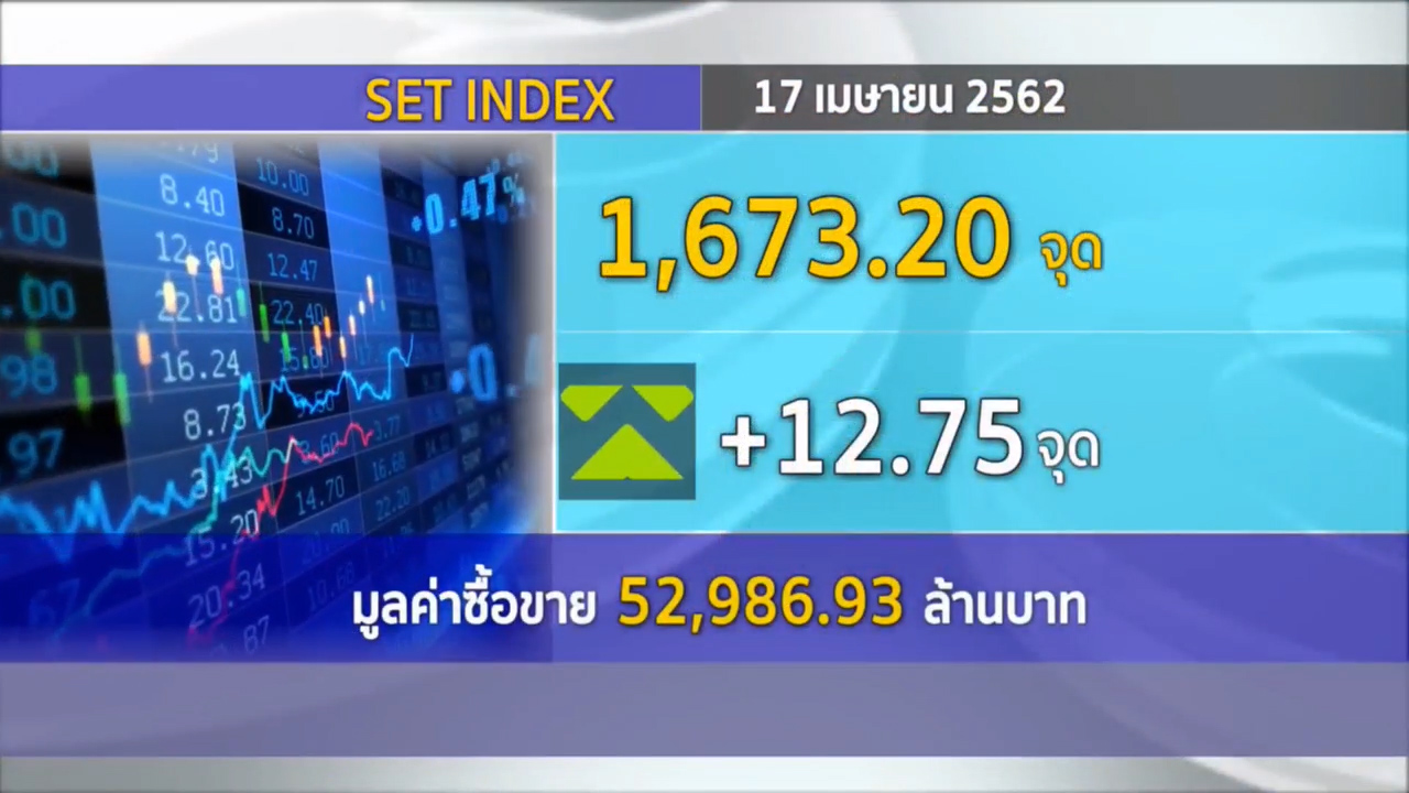 กทม. 17 เม.ย.- หุ้นไทยปิดบวก 12.75 จุด ที่ระดับ 1,673.20 จุด มูลค่าการซื้อขาย 52,986.93 ล้านบาท.-สำนักข่าวไทย