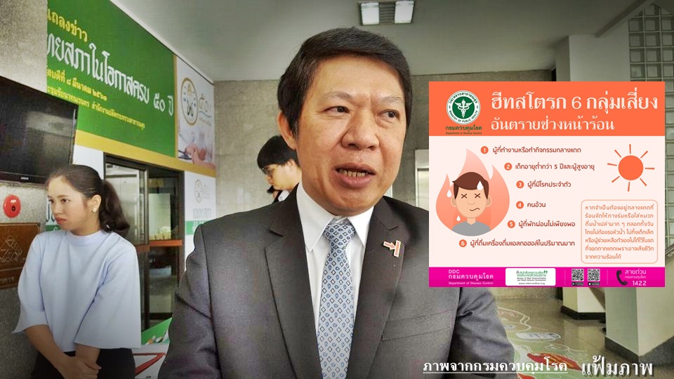 นพ.สุวรรณชัย วัฒนายิ่งเจริญชัย อธิบดีกรมควบโรค กล่าวว่า ในช่วงนี้สภาพอากาศร้อนอบอ้าว ประชาชนอาจเจ็บป่วยจากอากาศร้อนได้ โดยเฉพาะโรคฮีทสโตรก ซึ่งเป็นภาวะวิกฤติร่างกายไม่สามารถปรับตัวหรือควบคุมระดับความร้อนภายในร่างกายจากผลของสภาพอากาศที่ร้อนจัด อาการสำคัญได้แก่ ตัวร้อน อุณหภูมิร่างกายสูงขึ้นเรื่อยๆ จนเกิน 40องศาเซลเซียส อาการสำคัญคือหน้ามืด เพ้อ กระสับ กระส่าย มึนงง หายใจเร็ว หัวใจเต้นผิดจังหวะ ชักเกร็ง ช็อก จนถึงหมดสติ และหากไม่ได้รับการรักษาอย่างทันท่วงที อาจทำให้เสียชีวิตได้