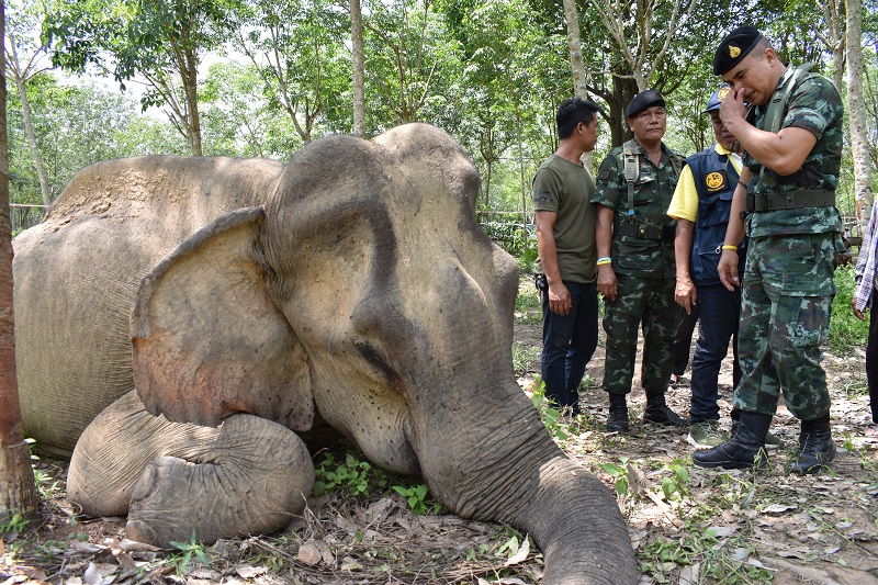 กรณีนายธนกร ทิวิน ผู้ใหญ่บ้านท่าเต้นท์ ม.9 ต.พระเพลิง อ.เขาฉกรรจ์ จ.สระแก้ว รับแจ้งจากชาวบ้านพบช้างป่าล้มในลักษณะนั่งคุกเข่าอยู่ในสวนยางพารา จึงประสานเจ้าหน้าที่เขตรักษาพันธุ์สัตว์ป่าเขาอ่างฤาไนเข้าตรวจสอบ จากนั้นเจ้าหน้าที่ได้เข้าแจ้งความลงบันทึกไว้เป็นหลักฐานที่ สภ.เขาฉกรรจ์ และจัดชุดเจ้าหน้าที่ดูแลซากช้างตั้งแต่ตลอดคืนที่ผ่านมา (22 เม.ย.)