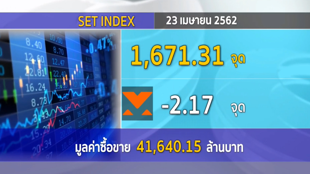 กทม. 23 เม.ย.-ดัชนีหุ้นไทยปิดลบ 2.17 จุด อยู่ที่ระดับ 1,671.31 จุด มูลค่าการซื้อขาย 41,640.15 ล้านบาท.-สำนักข่าวไทย