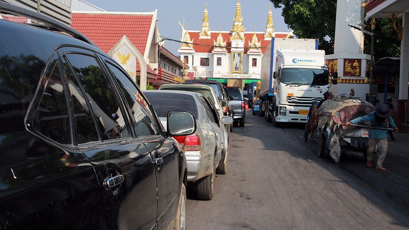 พ.ต.อ.เบญจพล รอดสวาสดิ์ ผกก.ตม.จว.สระแก้ว ได้รับรายงานจากเจ้าหน้าที่ด่านพรมแดนบ้านคลองลึก อ.อรัญประเทศ จ.สระแก้ว ว่า เกิดสภาพการจราจรคับคั่งหน้าด่านมาตั้งแต่เช้า (24 เม.ย.) รถติดยาวไปถึงสี่แยกไฟแดงของถนนตัดใหม่ ระยะทางประมาณ 4 กม. ทำให้รถทุกชนิดที่ข้ามสะพานมิตรภาพชายแดนไทย-กัมพูชา กระจุกตัว รวมถึงรถเข็นสองล้อของชาวกัมพูชาติดอยู่บริเวณหน้าด่านด้วย พร้อมกันนี้เจ้าหน้าที่ได้ประสานกับ ตม.ปอยเปต ประเทศกัมพูชา ทราบว่ารถติดยาวเช่นเดียวกัน