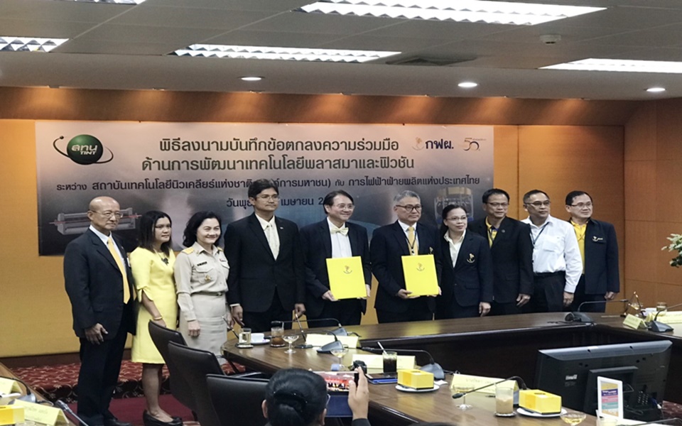 นายพัฒนา แสงศรีโรจน์ รองผู้ว่าการยุทธศาสตร์ การไฟฟ้าฝ่ายผลิตแห่งประเทศไทย (กฟผ.) ร่วมลงนามในบันทึกข้อตกลงความร่วมมือพัฒนาเทคโนโลยีพลาสมาและฟิวชัน กับนายพรเทพ นิศามณีพงษ์ ผู้อำนวยการสถาบันเทคโนโลยีนิวเคลียร์แห่งชาติ (องค์การมหาชน) หรือ สทน.