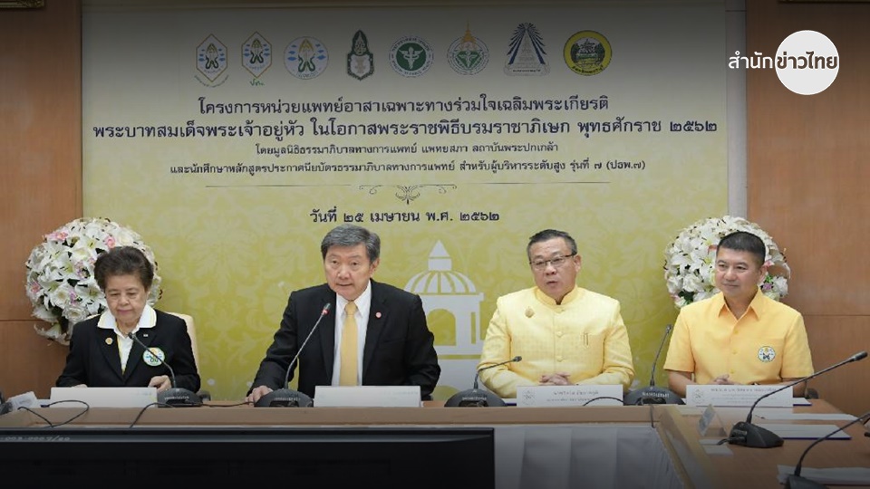 นพ.ปิยะสกล สกลสัตยาทร รัฐมนตรีว่าการกระทรวงสาธารณสุข พร้อมด้วย พญ.สมศรี เผ่าสวัสดิ์ นายกแพทยสภาและนายวิทวัส ชัยภาคภูมิ รองเลขาธิการสถาบันพระปกเกล้า แถลงข่าวโครงการหน่วยแพทย์อาสาเฉพาะทางร่วมใจเฉลิมพระเกียรติพระบาทสมเด็จพระเจ้าอยู่หัว ในโอกาสพระราชพิธีบรมราชาภิเษก พุทธศักราช 2562 ว่า โครงการหน่วยแพทย์อาสา ฯ จัดขึ้นต่อเนื่อง โดยครั้งนี้เพื่อเฉลิมพระเกียรติในวาระพระราชพิธีบรมราชาภิเษก ซึ่งจะจัดขึ้นในระหว่างวันที่ 10-12 พ.ค.2562 ที่ รพ.พระจอมเกล้า