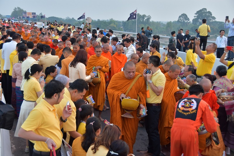 เมื่อเวลา 05.30 น. (26 เม.ย.) นายรณชัย จิตรวิเศษ ผู้ว่าราชการจังหวัดหนองคาย นายสีหุน สิทธิลือไซ รักษาการเจ้าครองนครหลวงเวียงจันทน์ สาธารณรัฐประชาธิปไตยประชาชนลาว และนายจีน เบอนาร์ด คารัสโก เอกอัครราชทูตออสเตรเลียประจำ สปป.ลาว พร้อมประชาชนทุกภาคส่วนร่วมกันทำบุญตักบาตรสองแผ่นดิน บริเวณกลางสะพานมิตรภาพไทย – ลาว แห่งที่ 1 อ.เมือง จ.หนองคาย โดยมีพระสงฆ์ไทยและ สปป.ลาว 125 รูป ออกบิณฑบาตเป็นสิริมงคลในงานฉลองครบรอบ 25 ปี สะพานมิตรภาพไทย-ลาว แห่งที่ 1