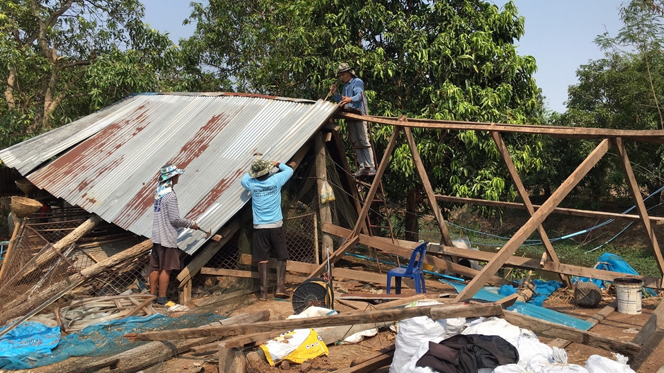 นายไพบูลย์ ดวงศรี นายกองค์การบริหารส่วนตำบล(อบต.) โพธิ์ใหญ่ อ.วารินชำราบ จ.อุบลราชธานี พร้อมเจ้าหน้าที่งานป้องกันและบรรเทาสาธารณภัย ลงพื้นที่สำรวจความเสียหายของบ้านเรือนประชาชน ที่บ้านลิ้นไม้ ต.โพธิ์ใหญ่ หลังถูกพายุฤดูร้อนพัดถล่มเมื่อช่วงบ่ายวานนี้ ทำให้หลังคาสังกะสีบ้านเรือนประชาชน 11 หลัง ได้รับความเสียหาย เพื่อจัดหาวัสดุใช้ซ่อมแซมบ้านเรือนให้กับประชาชนที่ได้รับผลกระทบ