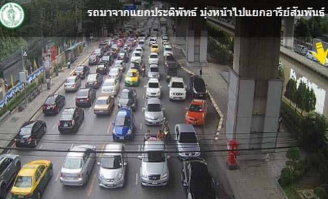 สภาพการจราจร ถนนพระราม6 จากแยกประดิพัทธ์ มุ่งหน้าแยกอารีสัมพันธ์ รถมาก เคลื่อนตัวช้า