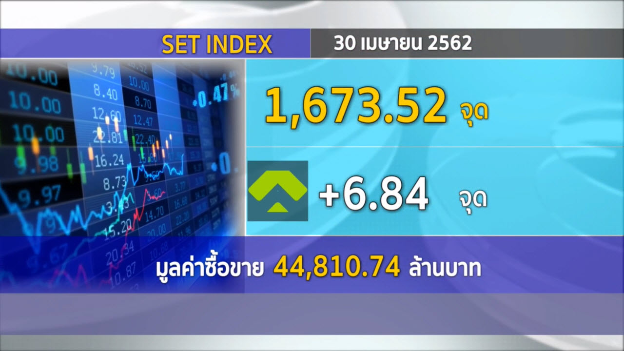 กทม. 30 เม.ย.-ดัชนีหุ้นไทยปิดบวก 6.84 จุด อยู่ที่ระดับ 1,673.52 จุด มูลค่าการซื้อขาย 44,810.74 ล้านบาท.-สำนักข่าวไทย