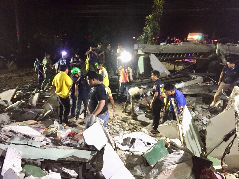 ด้านนายภิรมย์ นิลทยา รองผู้ว่าราชการจังหวัดประจวบคีรีขันธ์ กล่าวว่า สาเหตุตึกถล่มสันนิษฐานว่าโครงสร้างเดิมอาจไม่แข็งแรง และปลูกสร้างมานานกว่า 10 ปี ซึ่งจะประสานให้วิศวกรสำนักงานโยธาธิการจังหวัดเข้าตรวจสอบอีกครั้งว่ามีการต่อเติมหรือไม่ แต่เวลานี้เจ้าหน้าที่หลายฝ่ายได้ช่วยกันรื้อซากเพื่อนำตัวผู้ที่ยังติดอยู่ใต้ตึกอีก 3 รายออกมาให้เร็วที่สุด.-สำนักข่าวไทย