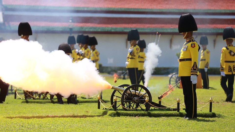 กรุงเทพฯ 4 พ.ค.-ทหารสามเหล่าทัพยิงสลุตหลวงพิเศษ เนื่องในงานพระราชพิธีบรมราชาภิเษก วันที่ 4-6 พฤษภาคม 2562