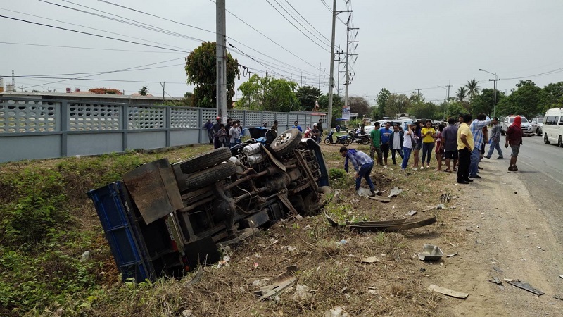 ราชบุรี 8 พ.ค.- เกิดอุบัติเหตุถนนสายราชบุรี รถกระบะเสียหลักไถลไปชนกับรถหกล้อบรรทุกดินลูกรังอย่างแรง เสียชีวิต 2 เจ็บ 2