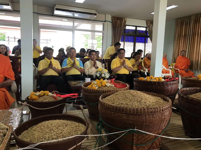 เมื่อเวลา 09.10 น. (9 พ.ค.) นายวีระชัย นาคมาศ รองผู้ว่าราชการจังหวัดพระนครศรีอยุธยา พร้อมเกษตรกร ร่วมประกอบพิธีทำบุญ เนื่องในวันแรกนาขวัญ 9 พ.ค. ที่ศูนย์การเรียนรู้บ้านเทโพ หมู่ 5 ต.สามเรือน อ.บางปะอิน โดยพระสงฆ์ 9 รูป ได้เจริญพระพุทธมนต์ปลุกเสกเมล็ดพันธุ์ข้าวเปลือก เพื่อใช้ในการเพาะปลูกนาปี จากนั้นได้นำเมล็ดพันธุ์ข้าวลงหว่านในแปลงนาปีแบบเกษตรอินทรีย์เป็นสิริมงคลและขวัญกำลังใจแก่เกษตรกร