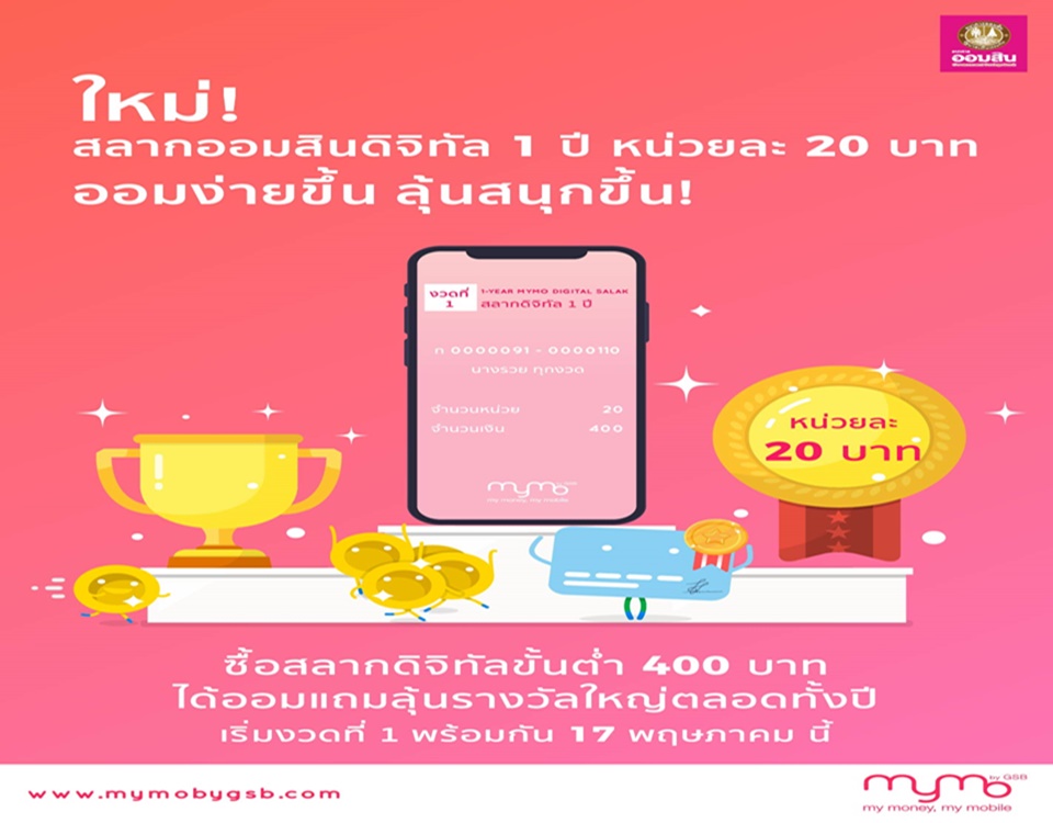 นายชาติชาย พยุหนาวีชัย ผู้อำนวยการธนาคารออมสิน เปิดเผยว่า ธนาคารออมสินเปิดรับฝากสลากออมสินดิจิทัล 1 ปี (สลากดิจิทัล : Digital Salak on MyMo) ซึ่งเหมาะกับผู้ฝากในกลุ่มนักเรียนนิสิตนักศึกษา ชั้นเตรียมอุดมศึกษา วัยเริ่มต้นทำงาน จนถึงวัยทำงาน ซึ่งต้องการเริ่มต้นการออมเงินที่ให้ผลตอบแทนคุ้มค่า และใช้ Mobile Banking เครื่องมือฝากเงินในยุคดิจิทัล โดยจะเปิดรับฝากตั้งแต่วันที่ 17 พฤษภาคม 2562 เป็นต้นไป ผ่าน Mobile Banking หรือ MyMo ของธนาคารออมสินเท่านั้น