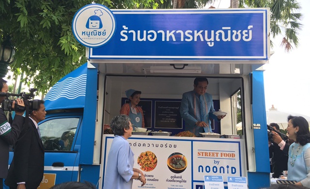 นายกรัฐมนตรีได้ชิมอาหารแต่ละร้าน โดยเมื่อถึงร้านหนูณิชย์ได้ชื่นชมแนวคิดการจัดรถขายอาหารเคลื่อนที่ และให้ศึกษาแนวทางต่างประเทศที่มีการนำรถขายอาหารไปขายในที่สาธารณะ ซึ่งต้องเน้นความสะอาดโดยเฉพาะวัตถุดิบ เช่น ผักที่ใช้ปรุงอาหารจะต้องล้างให้สะอาด แช่ผัก 5 นาทีก่อน นายกรัฐมนตรีได้ตักอาหารให้รัฐมนตรีว่าการกระทรวงพาณิชย์ และบอกว่า “นี่คือสิ่งดี ๆ ที่เกิดขึ้นในประเทศไทย รัฐบาลทำให้หมด ตั้งแต่สากกะเบือยันเรือรบ แล้วมาบอกว่าไม่มีผลงาน”. – สำนักข่าวไทย