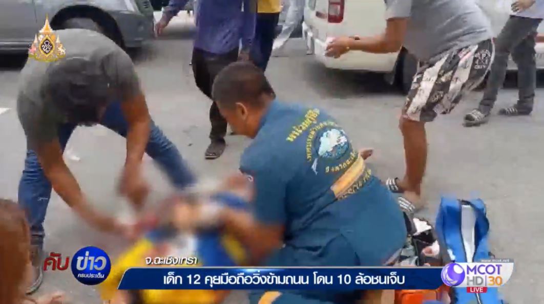 ฉะเชิงเทรา 9 พ.ค.-เด็กชาย 12 ปี คุยโทรศัพท์แล้ววิ่งข้ามถนนจะไปขึ้นรถที่จอดคอยในเลนทางด่วน โดยไม่มองรถที่ขับลงมาจากสะพานถูก10ล้อชนเต็มแรง อาการสาหัส