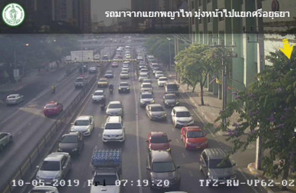 ถนนศรีอยุธยา ขาออก มุ่งหน้าแยกศรีอยุธยา รถเคลื่อนตัวได้ช้า ท้ายแถวสะสมอยู่ที่หน้า รพ.พญาไท 1