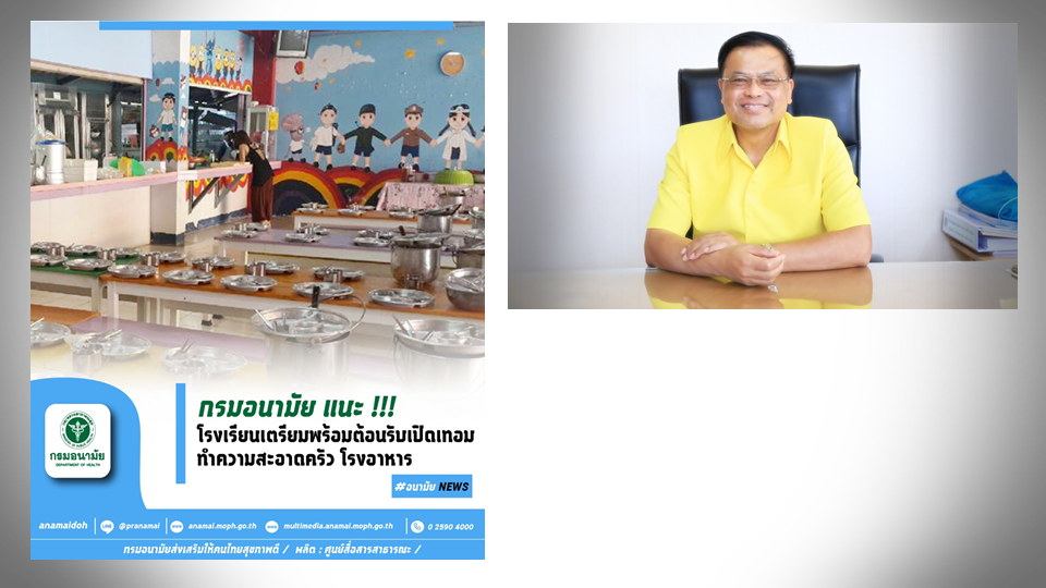 นพ.ดนัย ธีวันดา รองอธิบดีกรมอนามัย กล่าวว่า ช่วงปิดเทอม โรงครัวและโรงอาหาร จะไม่ได้ใช้งานซึ่งทำให้เกิดการสะสมของฝุ่น หยากไย่ รวมทั้งอาจเป็นที่อยู่อาศัยของสัตว์ต่างๆ เช่น นก หนู หรือแมลงนำโรคได้ ดังนั้น ก่อนเปิดเทอมโรงเรียนควรทำความสะอาดโรงครัวและโรงอาหารให้ทั่ว ตั้งแต่พื้น ฝาผนัง เพดานโรงอาหารและครัว ที่เป็นสถานที่ใช้ประกอบอาหาร รวมถึงโต๊ะ เก้าอี้ โดยใช้ไม้กวาดด้ามยาว ปัด กวาด หยากไย่ ใยแมงมุม