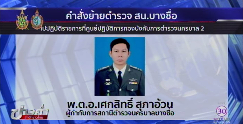 พล.ต.ต.เจริญ ศรีศศลักษณ์ ผู้บังคับการตำรวจนครบาล 2 มีคำสั่งให้ พ.ต.อ.เศกสิทธิ์ สุภาอ้วน ผู้กำกับการ สน.บางซื่อ และนายตำรวจอีก 4 นาย ไปปฏิบัติราชการที่ศูนย์ปฏิบัติการกองบังคับการตำรวจนครบาล 2 และให้ พ.ต.อ.ภานุเดช สุขวงศ์ รองผู้บังคับการตำรวจนครบาล 2 ปฏิบัติหน้าที่รักษาราชการแทนผู้กำกับการ ส.บางซื่อ จนกว่าจะมีคำสั่งเปลี่ยนแปลง