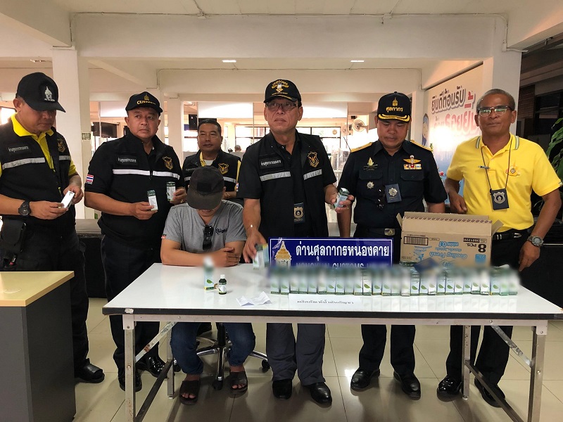 เมื่อเวลา 17.30 น. (11 พ.ค.) ที่ด่านพรมแดนสะพานมิตรภาพไทย – ลาว แห่งที่ 1 ฝั่งขาเข้าประเทศ อ.เมือง จ.หนองคาย นายนิมิตร แสงอำไพ นายด่านศุลกากรหนองคาย, นายสมบัติ ฆ้อนทอง หัวหน้าฝ่ายปราบปรามศุลกากรหนองคาย พร้อมเจ้าหน้าที่ศุลกากรหนองคาย จับกุมชายชาว สปป.ลาว อายุ 45 ปี ขณะนำกล่องกระดาษ 1 ใบ ลงจากรถโดยสารระหว่างประเทศเข้ามาทำพิธีการผ่านแดน เมื่อเจ้าหน้าที่ศุลกากรขอตรวจสอบภายในกล่องพบว่าเป็นน้ำมันกัญชา จำนวน 65 ขวด ๆ ละ 30 มิลลิลิตร ขวดละ 2,000 บาท มูลค่าประมาณ 195,000 บาท