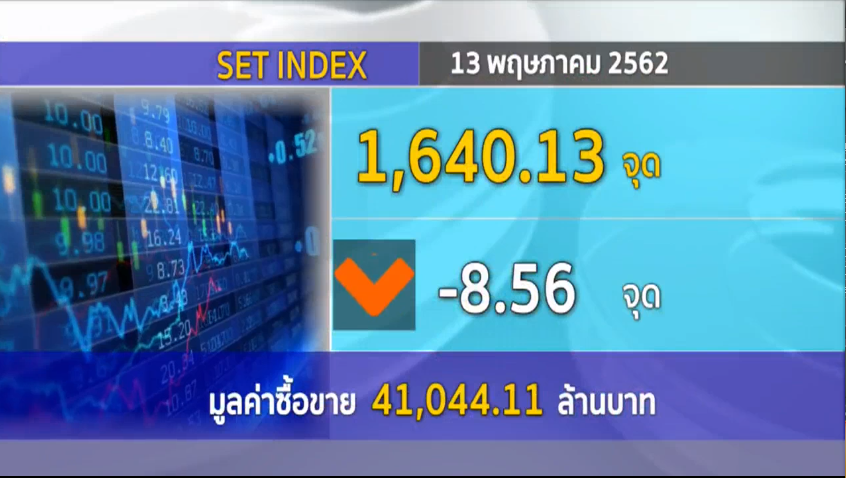 กทม. 13 พ.ค. – ตลาดหลักทรัพย์ปิดวันนี้ที่ระดับ 1,640.13 จุด ลดลง 8.56 จุด มูลค่าการซื้อขาย 41,044.11 ล้านบาท