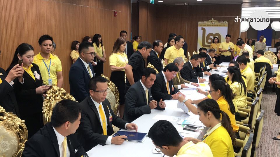รัฐสภา 14 พ.ค. – ผู้สื่อข่าวรายงานบรรยากาศการรายงานตัว ส.ส. ใหม่ ที่อาคารรัฐสภาใหม่ ย่านเกียกกาย วันนี้ (14 พ.ค. ) ซึ่งเป็นวันที่ 7 ตั้งแต่ช่วงเช้า นายไกลก้อง ไวทยการ จากพรรคอนาคตใหม่ เดินทางมารายงานตัวเป็นคนแรก จากนั้น ส.ส.พรรคชาติไทยพัฒนา 9 คน นำโดย นายวราวุธ ศิลปอาชา นายประภัตร โพธสุธน และนายนิกร จำนง ได้มารายงานตัว รวมถึง นายนิคม บุญวิเศษ จากพรรคพลังปวงชนไทย รวมครึ่งเช้ามารายงายตัว 11 คน ทำให้ขณะนี้ มี ส.ส. มารายงานตัวแล้วรวม 451 คน คิดเป็นร้อยละ 90