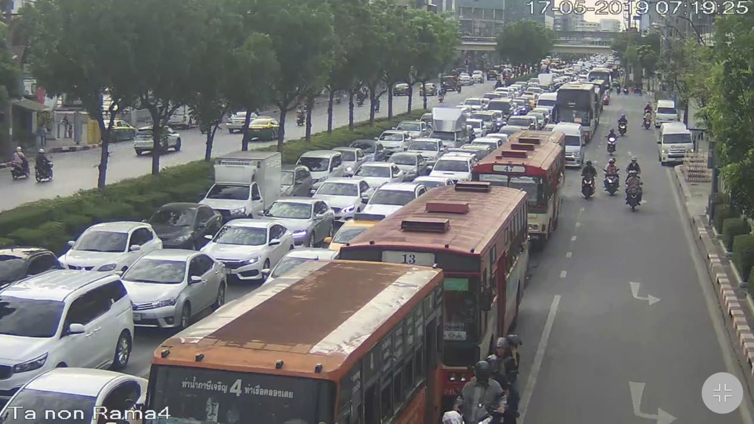 กทม. 17 พ.ค.-สวพ.FM 91 รายงานจราจรเช้าวันศุกร์ ถนนพระราม 4 ขาเข้า มุ่งหน้าแยกวิทยุ ต่อเนื่องแยกศาลาแดง รถติดขัดมาก ท้ายสะสมเลยแยกเกษมราษฎร์ไปแล้ว