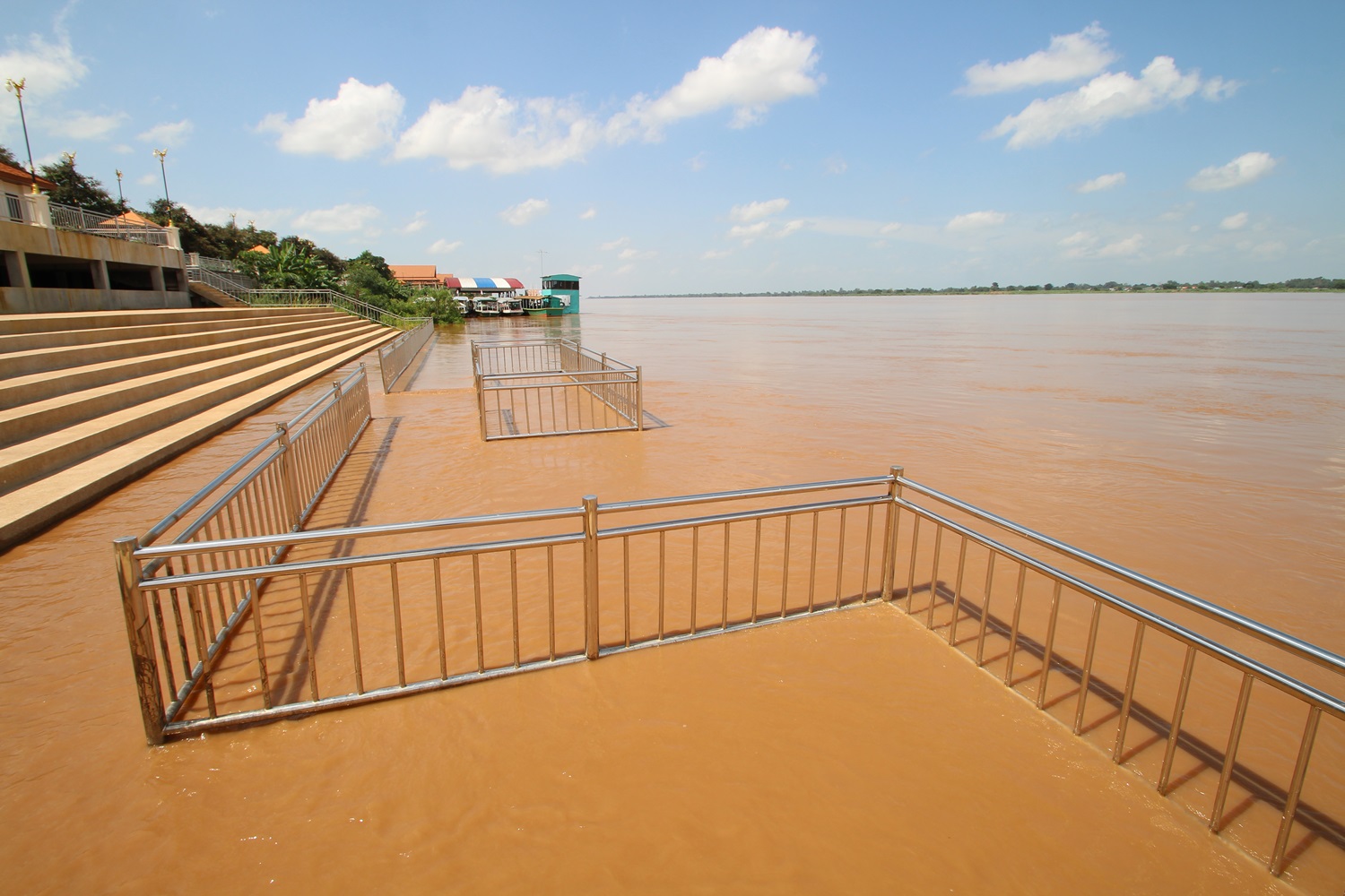 สถานการณ์แม่น้ำโขงในจังหวัดนครพนมล่าสุด (22 ส.ค.) ยังเพิ่มขึ้นเป็นลำดับ แม้ในพื้นที่จะมีปริมาณฝนตกเบาบาง แต่มีปริมาณน้ำทางตอนเหนือไหลมาสมทบอย่างต่อเนื่อง ล่าสุดอยู่ที่ระดับประมาณ 10 เมตร ห่างจากจุดวิกฤติเพียง 3 เมตร และพื้นที่ต้องเฝ้าระวังอย่างใกล้ชิด 4 อำเภอ ซึ่งเป็นพื้นที่ติดกับแม่น้ำโขง คือ บ้านแพง อ.เมือง ท่าอุเทน และธาตุพนม ระดับน้ำเกือบถึงตลิ่ง หากระยะนี้มีฝนตกหนักส่งทำให้น้ำระบายลงน้ำโขงได้ช้าและเอ่อท่วมชุมชนริมฝั่ง ล่าสุดจุดชมวิวแม่น้ำโขงในเขตเทศบาลตำบลธาตุพนม อ.ธาตุพนม น้ำเอ่อท่วมแล้วบางส่วน รวมถึงร้านค้าและแพร้านอาหาร ซึ่งเจ้าของเร่งหาเครื่องยึดให้มั่นคง เนื่องจากน้ำโขงขึ้นเร็วและกระแสน้ำไหลเชี่ยวอาจพัดพาแพหรือร้านค้าเสียหาย