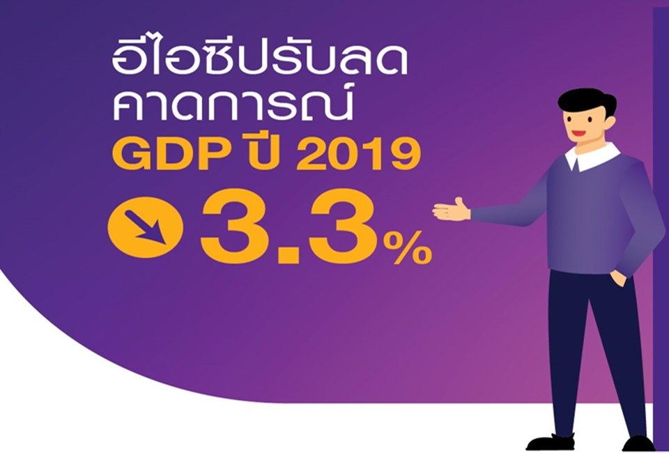 กรุงเทพ ฯ 22 พ.ค. – อีไอซี ธนาคารไทยพาณิชย์ ปรับลดคาดการณ์เศรษฐกิจทั้งปีเหลือร้อยละ 3.3 พร้อมหั่นส่งออกโตต่ำกว่าร้อยละ 2.7 ผลกระทบจากสงครามการค้าสหรัฐ-จีน