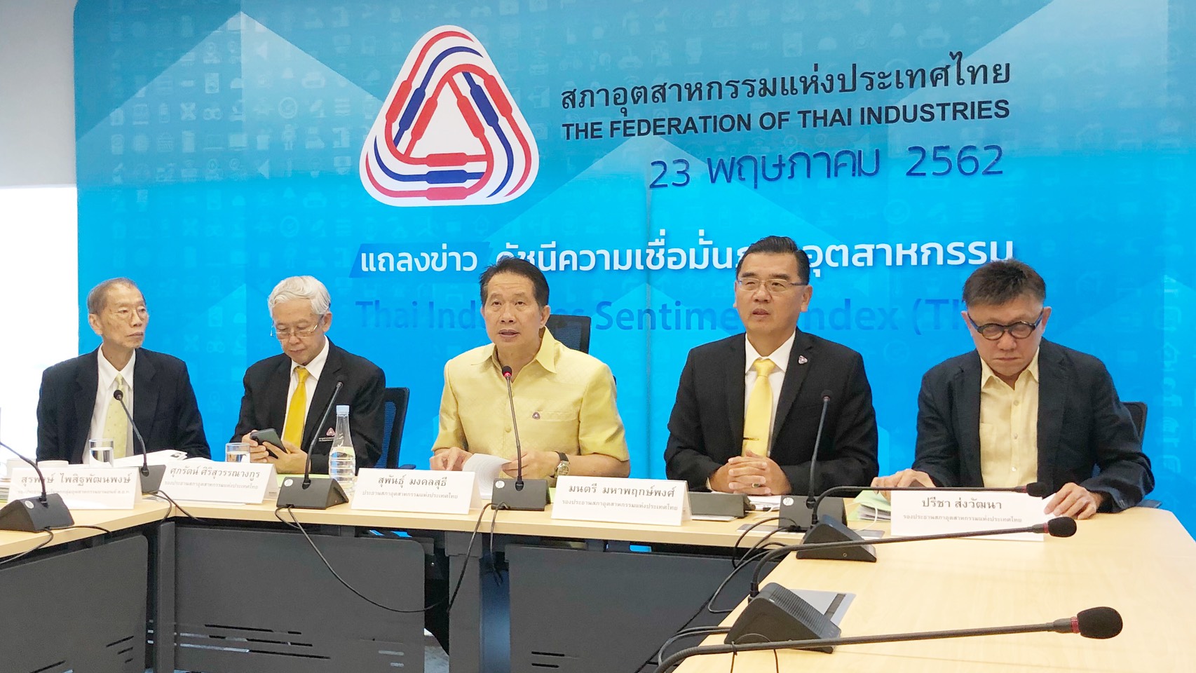 นายสุพันธุ์ มงคลสุธี ประธานสภาอุตสาหกรรมแห่งประเทศไทย (ส.อ.ท.) แถลงดัชนีความเชื่อมั่นภาคอุตสาหกรรมเดือนเมษายน 2562 ว่า ปรับตัวลดลงเป็นครั้งแรกในรอบ 4 เดือน มาอยู่ที่ระดับ 95.0 จากระดับ 96.3 ในเดือนมีนาคม 2562 เพราะเดือนมีนาคมผู้ประกอบการเร่งการผลิต ขณะที่เดือนเมษายนภัยแล้งส่งผลกระทบความเชื่อมั่นผู้ประกอบการ และยังมีปัจจัยกระทบจากการชะลอตัวของเศรษฐกิจโลกและสงครามการค้าระหว่างสหรัฐ -จีน และการเมืองในประเทศเรื่องการจัดตั้งรัฐบาลที่ยังไม่ชัดเจน ทำให้เศรษฐกิจในประเทศค่อนข้างชะลอตัว ส่วนดัชนีฯ คาดการณ์ 3 เดือนข้างหน้าชะลอตัวลงเช่นกัน อยู่ที่ระดับ 101.9 โดยลดลงจาก 104.2 ในเดือนมีนาคม 2562 เพราะผู้ประกอบการกังวลต้นทุนการผลิตที่มีแนวโน้มสูงขึ้น ความผันผวนของเงินบาทที่ส่งผลกระทบต่อความสามารถในการแข่งขันของผู้ส่งออก รวมทั้งปัญหาสงครามการค้า
